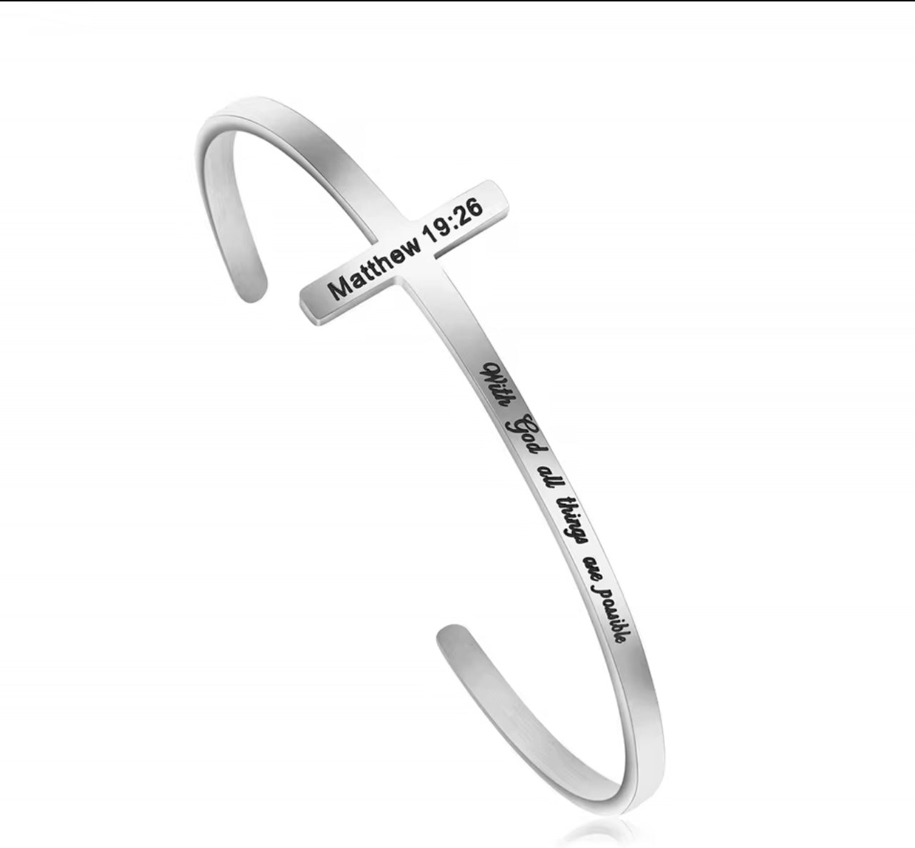 Bible Verse Scripture Cuff Bracelet - Matthew 19:26